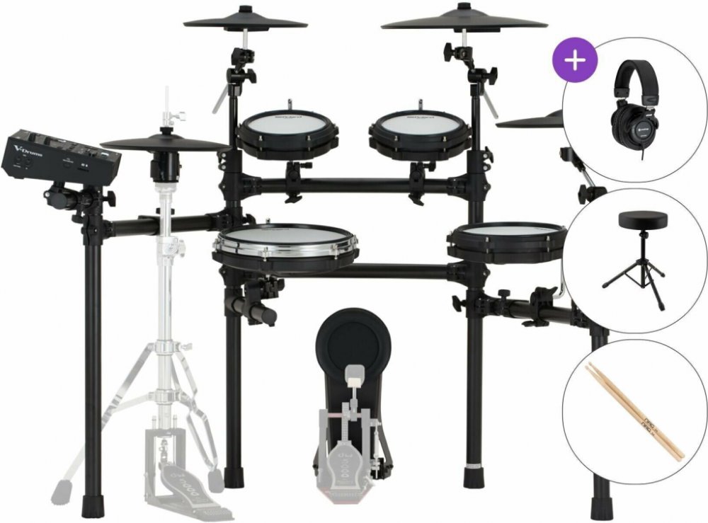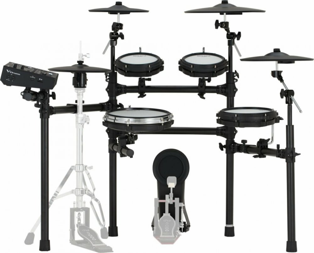 Série V-Drums 5 je určena pro seriózní bubeníky a přináší profesionální výkon pro každou hudební potřebu. Modul V51 představuje ideální volbu v univerzu next-gen V-Drums, kombinující flagship sound engine z V71 na univerzální hardwarové platformě s plnou podporou digitálních padů, robustními I/O a plynulou integrací se softwarem DW Soundworks pro hraní přes počítač. Díky zabudovanému bezdrátovému připojení je snadné rozšiřovat sadu o stále nové zvukové expanze a další obsah V-Drums na Roland Cloud. Vstupní brána s profesionální expresivitouSada TD513 představuje vstupní bránu do řady V-Drums 5, poskytující vynikající expresivitu a výkon v přehledném provedení s vysoce citlivým snarem, propracovanými pady a integrovanými nástroji pro každodenní cvičení a rozvoj dovedností. Ať hrajete kdekoli, TD513 nabízí klíčové prvky high-end elektronické soupravy – kompaktní provedení plné funkcí, které rostou spolu s vámi. Prémiový zvukModul V51 je součástí jednotného ekosystému s moduly V71 a V31, což poprvé umožňuje plnou kompatibilitu mezi všemi moduly V-Drums. Bubeníci mohou využívat základní zvukovou knihovnu vytvořenou pro sérii V-Drums 7 a nechat se inspirovat obsahem Roland Cloud, včetně multi-vrstvených V-Drums Instrument Expansions založených na prémiových sadách DW. Nové zvuky, kdykoli je potřebujeteStejně jako u modulu V71, is V51 lze libovolně měnit zvukové sady, aby hudba zůstala čerstvá. Pomocí aplikace Roland Cloud Connect na mobilním zařízení mohou bubeníci bezdrátově přistupovat k rostoucí nabídce V-Drums Instrument Expansions, stáhnout je přímo do modulu a ihned začít hrát.