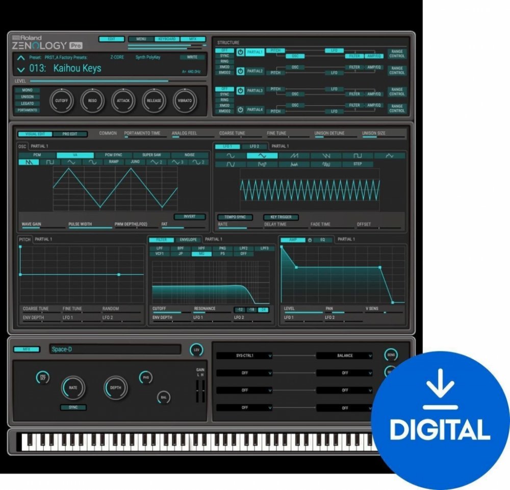 Využijte obrovskou sílu syntetizačného systému ZEN-Core a ponořte se hluboko do světa vlastního zvukového designu se ZENOLOGY Pro. Získáte úžasnou kvalitu zvuku a efektivitu ZENOLOGY plus rozsáhlé rozhraní pro vytváření zcela nových zvuků, které inspirují vaši hudbu.ZEN-Core Synthesis System obsahuje množství podrobných parametrů pro vývoj velkých, komplexních zvuků s animovaným pohybem. Díky jasnému, nastavitelnému rozhraní a několika zobrazením úprav poskytuje ZENOLOGY Pro plný přístup ke všem aspektům ZEN-Core a umožňuje vám vytvářet zvuky, které jste si jen představovali.ZEN-Core je mimořádně flexibilní a je založen na diskrétních syntetických hlasech nazývaných partials - každý obsahuje oscilátor, filtr, zesilovač a dvojité krokové LFO. Můžete použít až čtyři částice současně, přičemž si můžete vybrat z tisíců křivek, 10 modelovaných typů filtrů a 11 tvarů LFO. Kombinací více typů syntézy, bujných efektů a možností hluboké modulace můžete vytvořit ohromující zvuky, které podnítí nové nápady. Nízkofrekvenční oscilátory dodávají statickým zvukům pohyb - a více LFO znamená více možností modulace. ZENOLOGY Pro má dvě perpartiálne LFO s 11 různými tvary LFO. Díky čtyřem partiálom na tón je to osm současně LFO v patche! Step LFO mají 16 kroků automatizace synchronizované s rytmem s 37 volbami křivek na krok, ideální pro vytváření dlouhých, rozvíjejících se pasáží, modulární animované textury a zvuky s hluboce složitým pohybem. ZENOLOGY Pro má obrovský výběr připravených zvuků bicích, včetně slavných rytmických nástrojů Roland, akustických souprav, autentických elektronických zvuků a exotických hybridních souprav, které využívají vrstvy a kombinace. Použijte je ve svých stopách tak, jak jsou, nebo jejich kombinujte a sestavujte vlastní soupravy. Získáte vícenásobné zobrazení úprav pro přesnou kontrolu nad každým kusem soupravy a šest vyhrazených bubnových kompresorů pro maximální úder.Stažení: https://www.rolandcloud.com/roland-account/keyInformace: https://www.roland.com/us/products/rc_zenology_pro/ Chcete-li zakoupený doživotní klíč aktivovat, přejděte na stránku https://www.roland.com/cloud/key, přihlaste se nebo si vytvořte účet a zadejte aktivační klíč (neklikejte na kartu Sériová čísla, protože ta je určena pro sériová čísla hardwaru) a klepněte na tlačítko Odeslat.Po zadání otevřete aplikaci Roland Cloud Manager. Pokud je již otevřen, bude možná nutné zavřít aplikaci Roland Cloud Manager a restartovat ji.Po restartování/otevření ověřte, zda je nástroj k dispozici, a nainstalujte jej.POZNÁMKA: Po zadání klíče nezapomeňte ověřit v aplikaci Roland Cloud Manager. Opětovné zadání klíče na výše uvedené stránce bude mít za následek chybu, protože klíč již byl uplatněn.