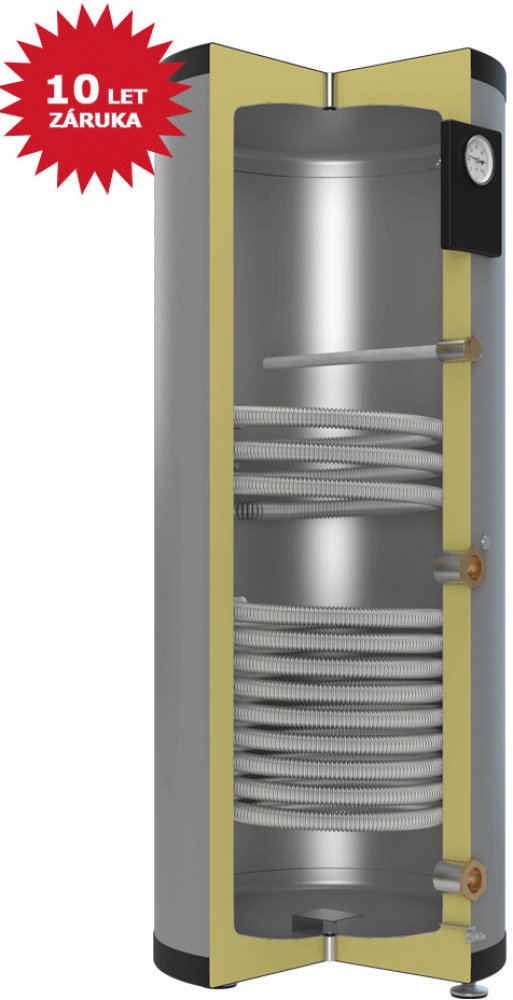 Nerezový zásobník teplé vody se dvěma trubkovými výměníky Objemová řada 250 litrů Zásobník je určen pro teplovodní zdroje tepla jako jsou kotle na tuhá paliva, teplovodní krby, plynové kotle, kondenzační kotle, solární systémy Provedení zásobníku stojaté svislé - součástí stavitelné balanční nohy (3ks) Zásobník je vyroben z vysoce legovaného nerezového materiálu 1.4571 (AISI 316Ti) Vysoká odolnost...