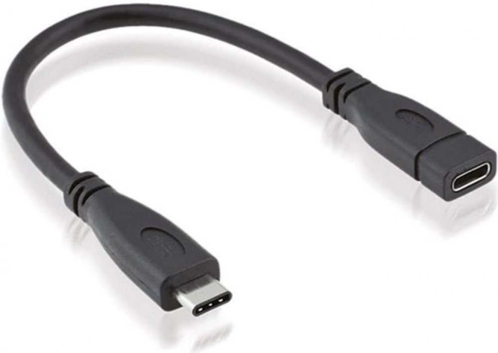 Prodlužovací USB 3.1 kabel s oboustranným konektorem USB C.; Použití: Prodloužení USB 3.1 kabelu s konektory USB C.; Konektory: USB C(M) - USB C(F); Standardy: USB 2.0 / 3.0 / 3.1; Přenosová rychlost: až 10Gbps; Délka: 0,15m; Barva: černá; Druh obalu: PE sáček Roline s eurovýsekem; Hmotnost výrobku: 15g; Počet v prodejním balení: 1 / 10
