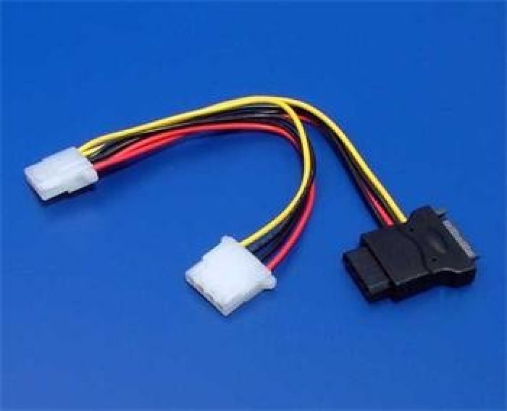 Redukce pro napájení 3 x 5,25" z napájecího konektoru SATA.;Konektory:DC-SATA(M) - 3x DC5,25F;Kabel:4 oddělené kabely, AWG 18;Délka:15cm - 15cm;Barva:kabel 5V: červená