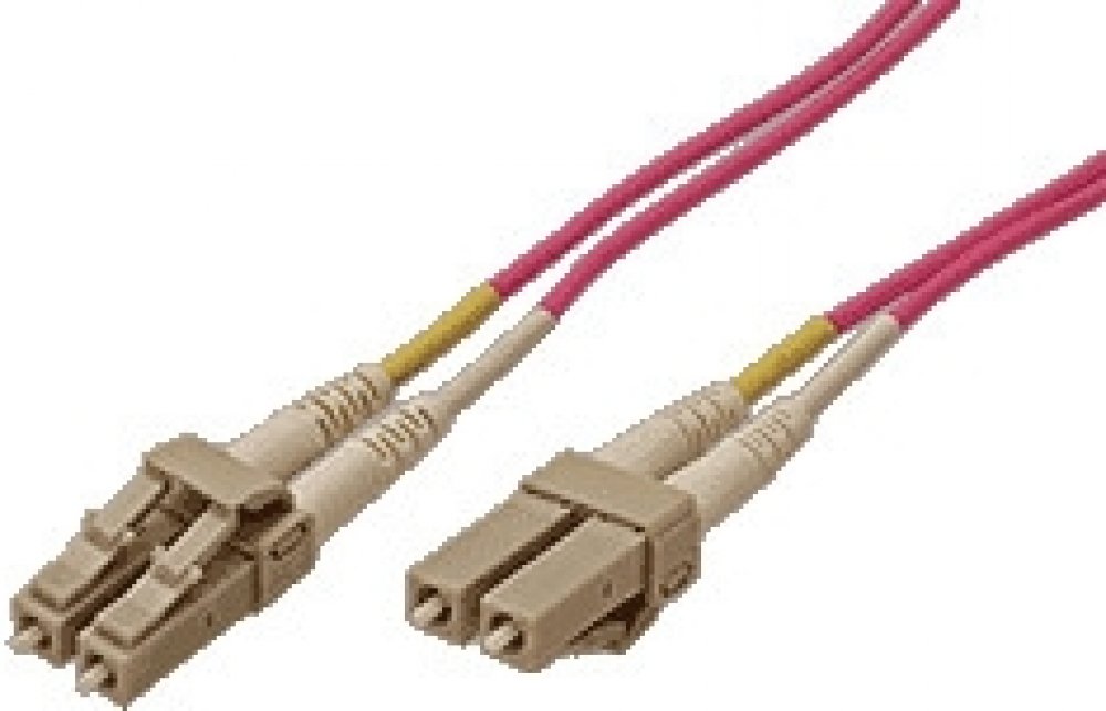 Duplexní optický kabel OM4 s konektory LC.;Konektory:2x LC(M) - 2x LC(M);Kabel:2 spojené kabely s vícevidovým skleněným vláknem (Ø vlákna 50µm, Ø obalu vlákna 125µm)