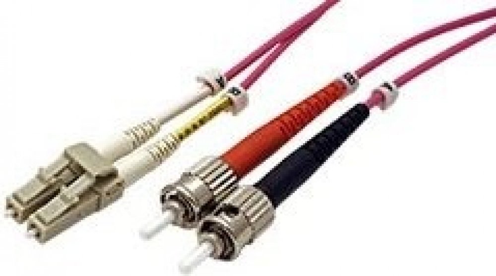 Duplexní optický kabel OM4 s konektory LC.; Konektory: LC(M) - ST(M); Kabel: 2 spojené kabely s vícevidovým skleněným vláknem (průměr vlákna 50µm, průměr obalu vlákna 125µm) průměr kabelu: 1,8mm třída OM4; Další informace: - přiložen měřící protokol; Délka: 2m; Barva: fialová; Druh obalu: PE sáček s papírovou výztuhou a eurovýsekem.