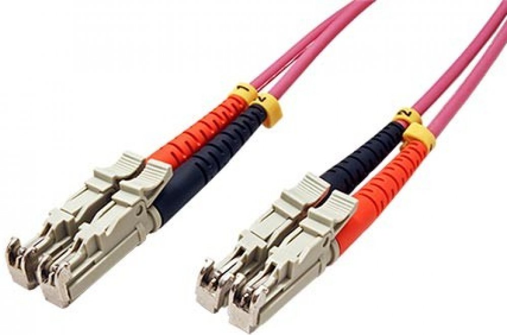 Vysoce kvalitní optický kabel s oboustranným vysoce bezpečným připojením LSH - oba konektory jsou vyleštěny UPC. Duplexní kabel s kabelem typu 50/125µm OM4: Plášť bez halogenů, zpomaluje hoření, fialo