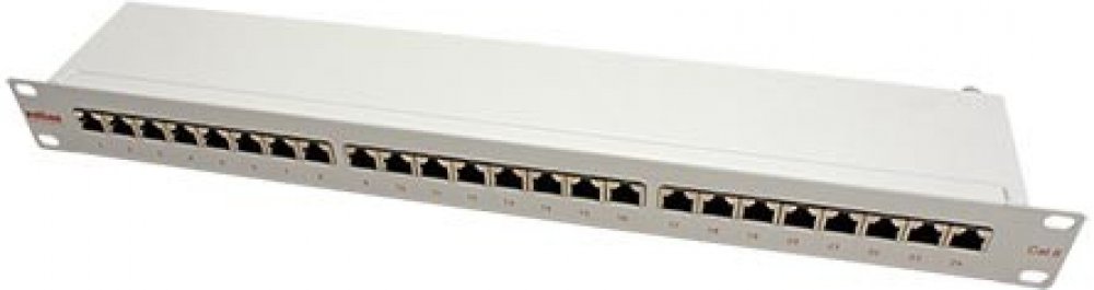 Stíněný, 24-portový patchpanel kategorie 6 pro montáž do 19“ rozvaděče (výška 1U).