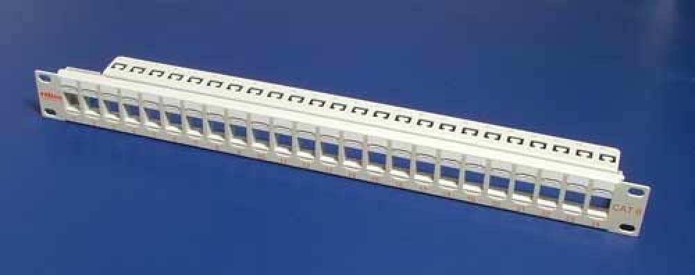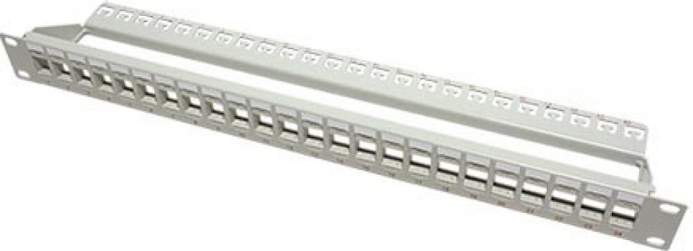 Rám patchpanelu pro osazení nestíněných konektorů (keystone), 24 pozic, 1 HU; Další informace: odnímatelný rám pro vyvazování; Barva: šedá světlá; Materiál: kov; Rozměry: 482 x 42 x 95mm; Balení: čelo + rám pro uchycení kabeláže, 24x vázací pásek; Druh obalu: papírová krabice.
