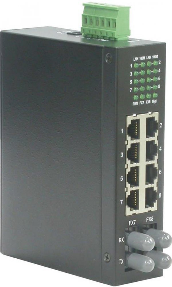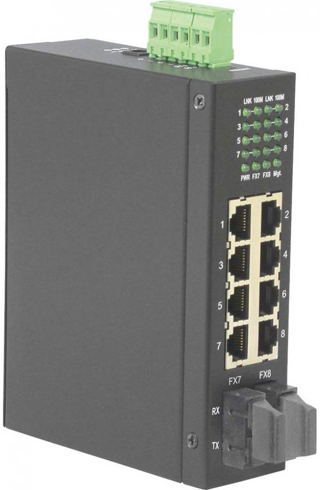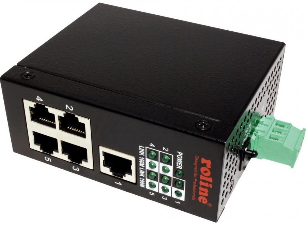 Použití: Kompaktní ethernet přepínač v kovovém provedení pro zvětšení počtu přípojných míst v síti. Je osazen celkem 5 porty 100Mb. Použití ve ztížených podmínkách je umožněno odolným krytem s možností montáže na DIN lištu a velkým rozsahem napájení.;