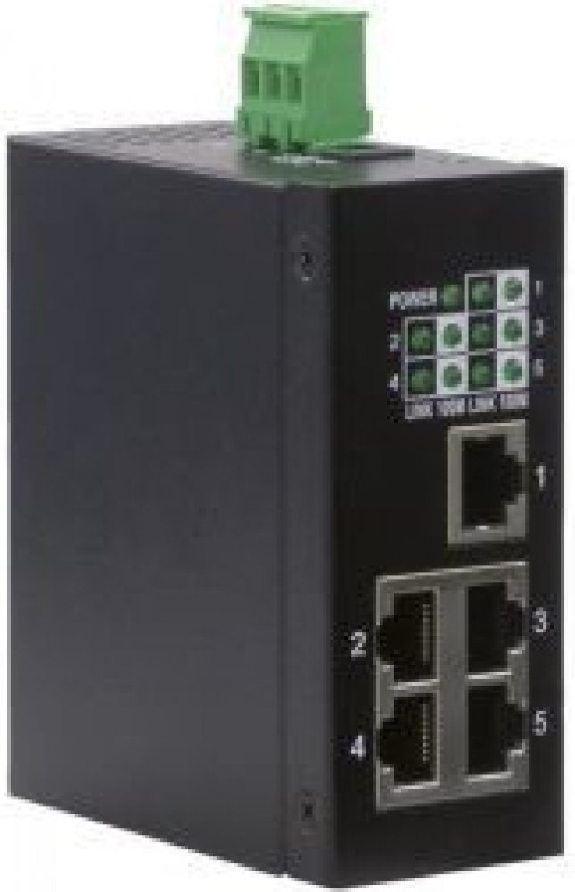 5 portový Ethernet přepínač pro sítě 10Mbps a 100Mbps v provedení pro průmyslové použití.;