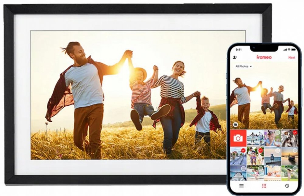 Wi-Fi digitální rámeček pro prezentaci fotografií a krátkých videí (max. 15 s), založený na operačním systému Android 6.0. Nabízí 10,1" dotykový IPS displej s rozlišením 1280 × 800 obrazových bodů, reproduktory o výkonu 2 W a 8 GB interní paměti, která pojme až 7000 fotografií nebo 250 videí. Ty lze do rámečku odesílat přes mobilní aplikaci Frameo nebo klasicky přes paměťovou kartu microSD či externí paměť s konektorem USB-C. K dispozici je navíc mnoho různých funkcí, např. zrcadlení ve vypnutém stavu, automatického nebo ručního otáčení, nastavení snímku, titulků, skrývání či režimu spánku. Potěší také zobrazení hodin, počasí a barevné podsvícení zadní strany pro navození jedinečné atmosféry. Bílé okraje kolem displeje dodávají fotorámečku originální styl a činí ho ještě více podobným klasickým rámečkům na fotografie. Díky odnímatelnému stojanu jej lze jak postavit na stůl, tak i zavěsit na zeď.