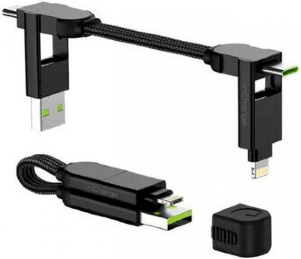 A: Kabel má různé možnosti připojení, takže je kompatibilní se zařízeními s vstupy USB, USB C, Lightning a MicroUSB. Můžete připojit chytré telefony, tablety, sluchátka, routery a mnoho dalšího.