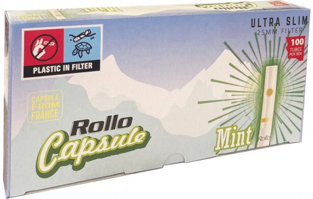 Dutinky Rollo Capsule Mint Slim jsou slimkové dutinky o průměru 6,5mm s práskací kapslí ve filtru.