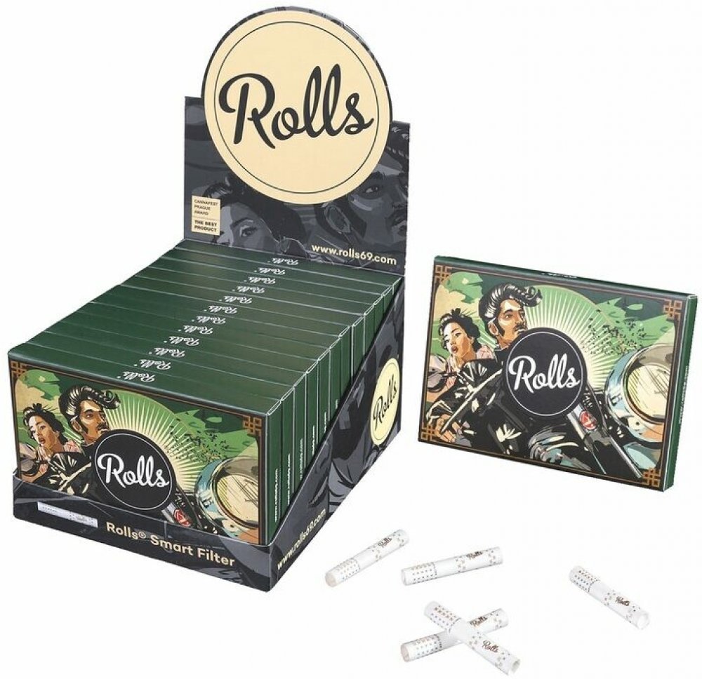 Cigaretové filtry Rolls - chytré filtry pro balení cigaret. Filtry snižují množství přijímaného dehtu, zabraňují škrábání v krku, neovlivňují chuť a dopřejí vám chladné kouření. Cena je uvedena za jedno prodejní balení.