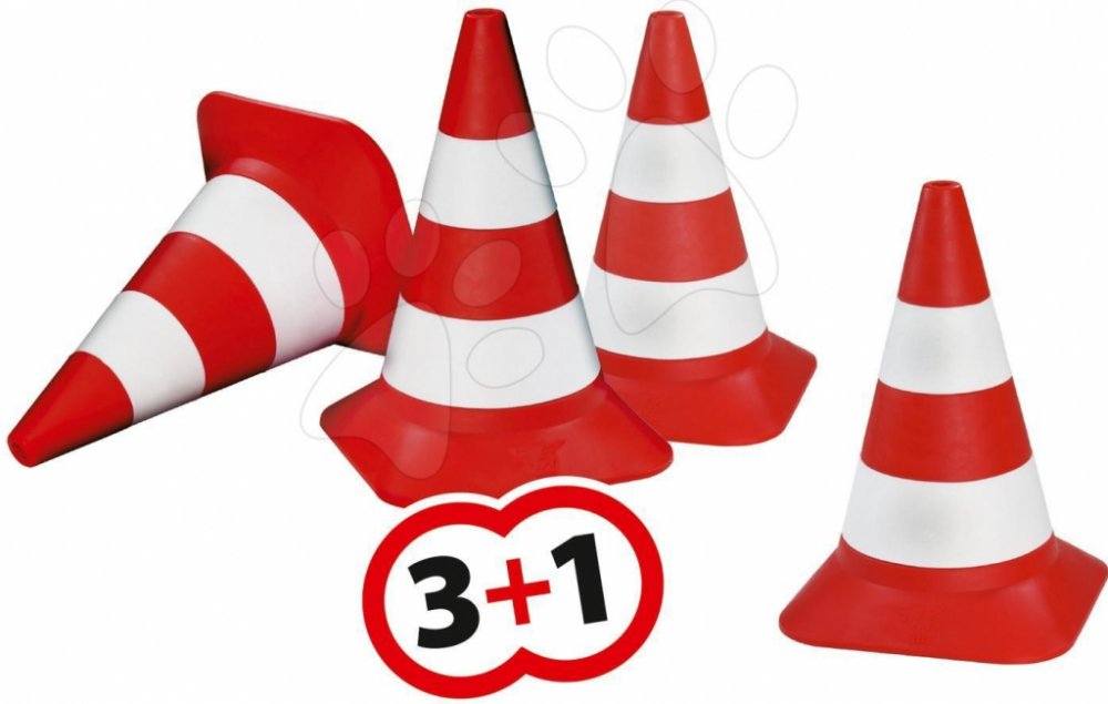 Sada 4 dopravních kuželů z pevného plastu.