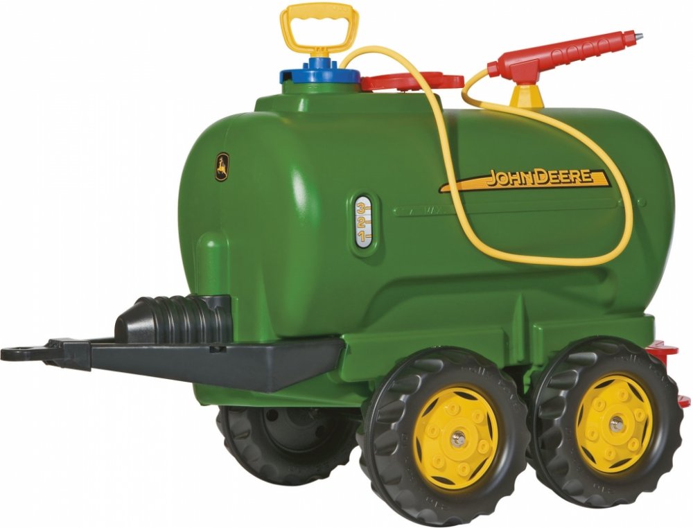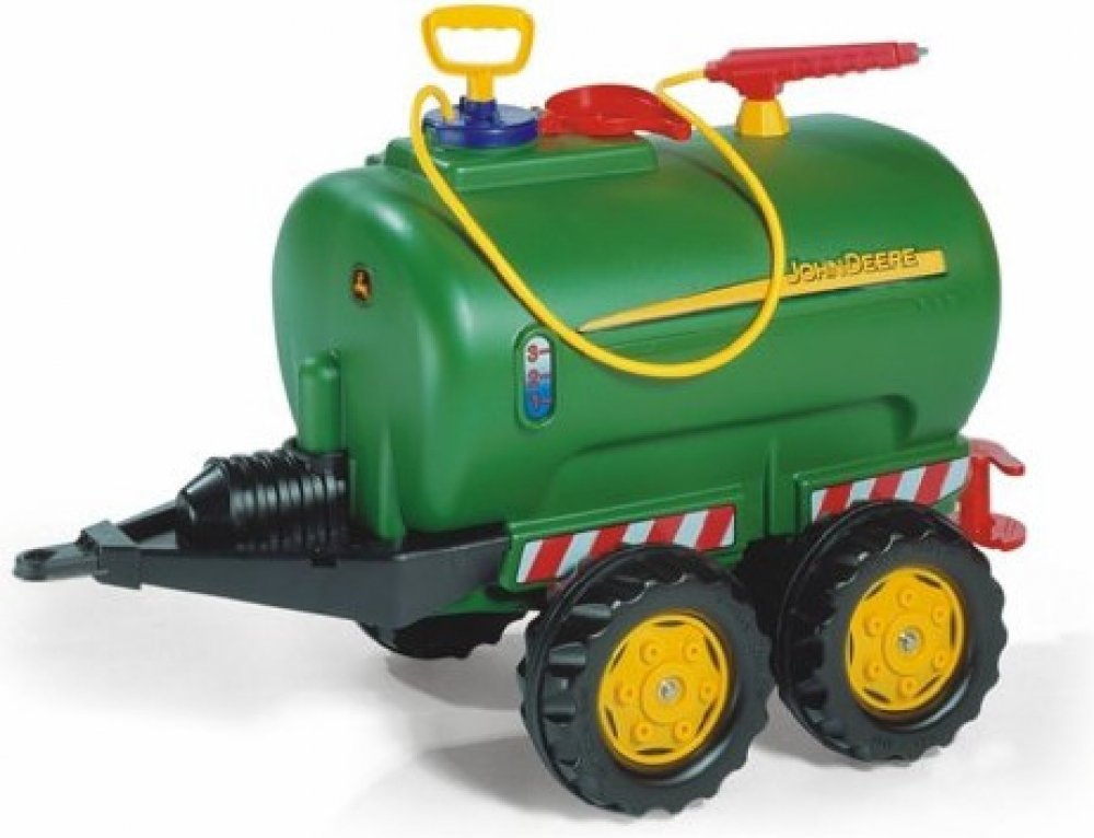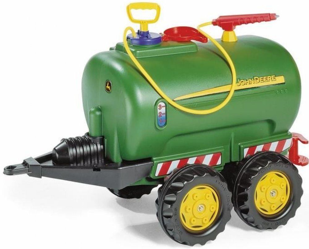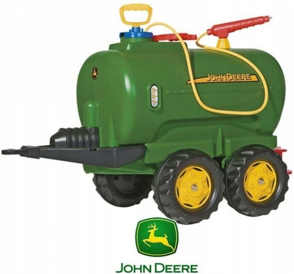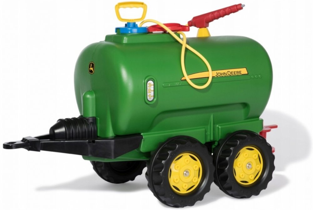 Tento přívěs je vhodný pro všechny traktory ROLLY TOYS. Jedná se o dvounápravovou cisternu s licencí John Deere, kterou lze naplnit vodou a poté rozstřikovat pomocí postřikovače a čerpadla.