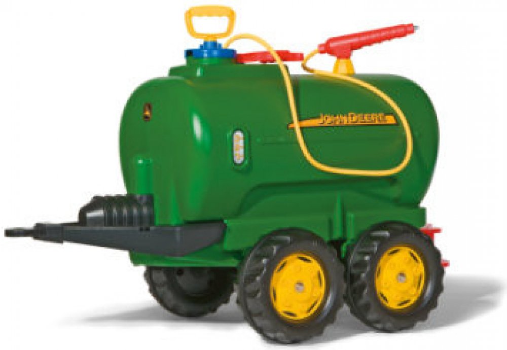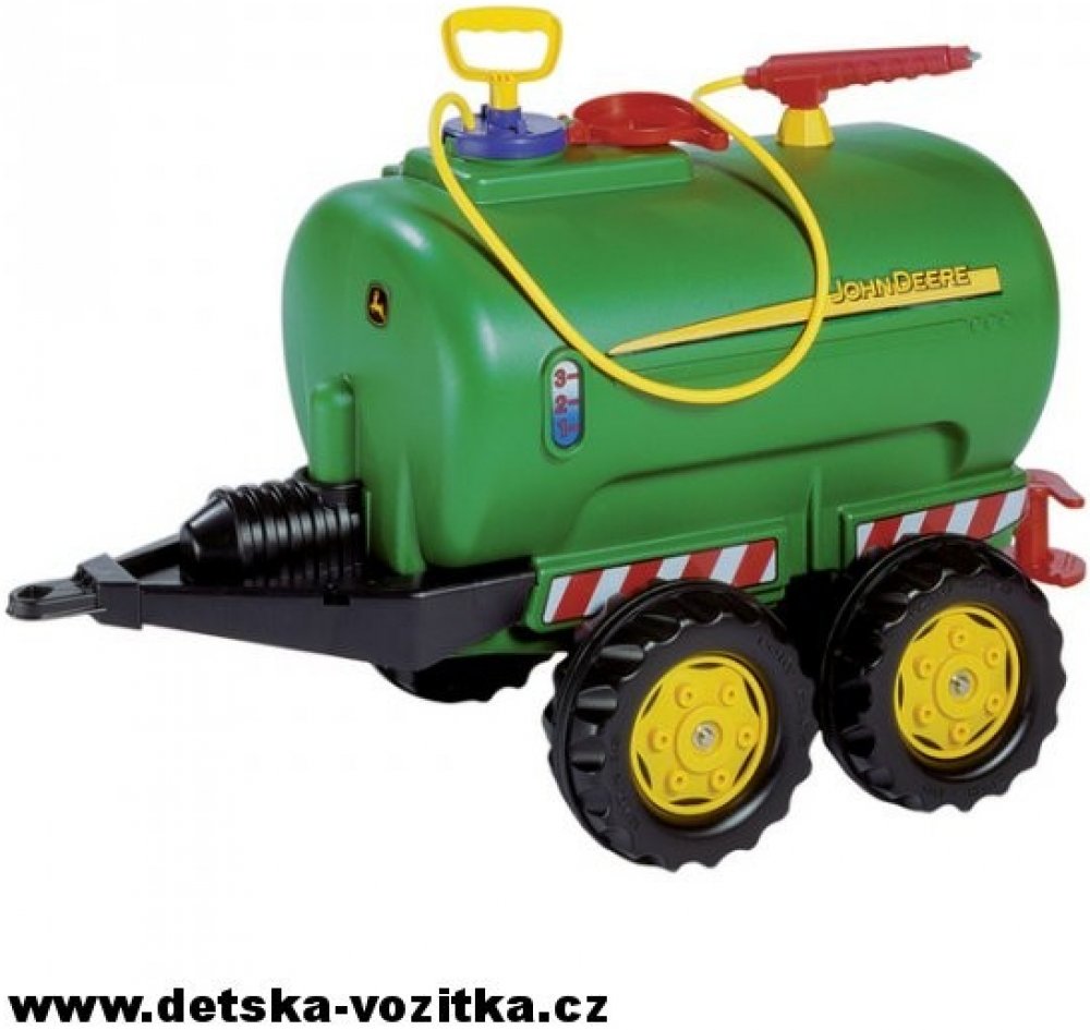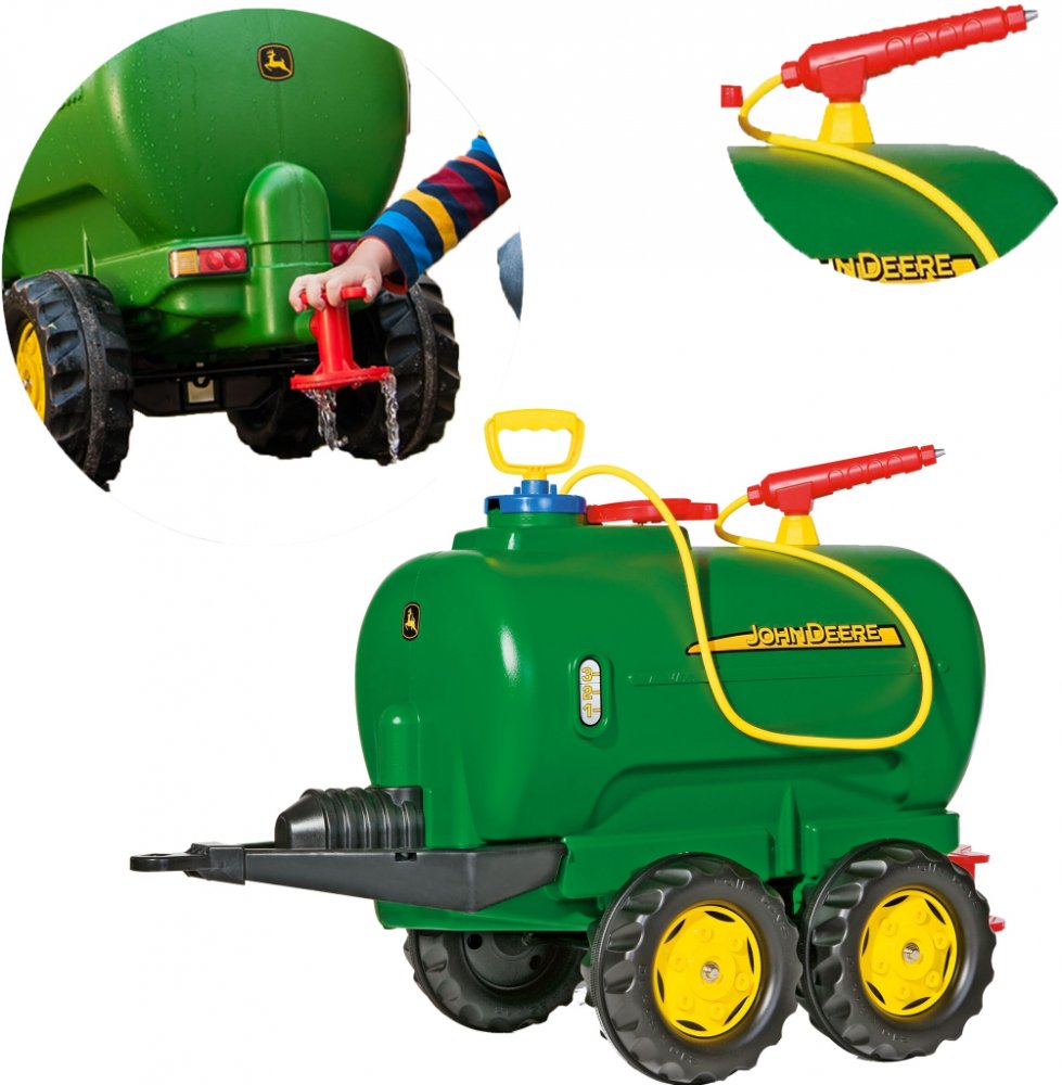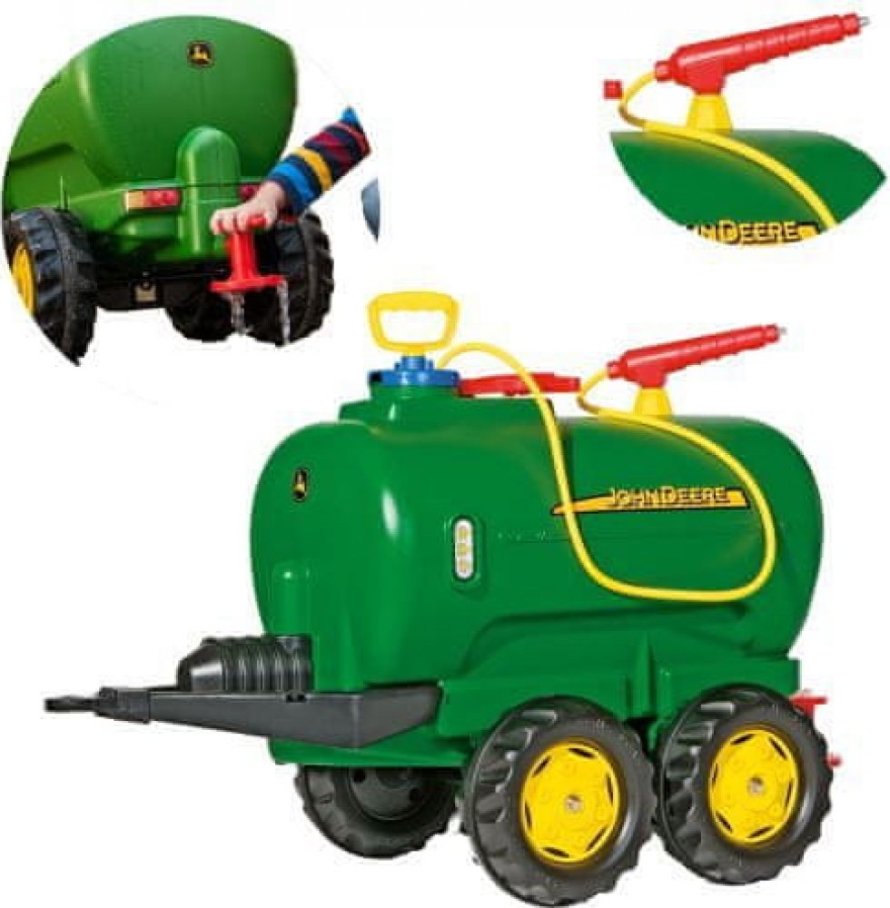 Tento přívěs je vhodný pro všechny traktory ROLLY TOYS. Jedná se o dvounápravovou cisternu s licencí John Deere, kterou lze naplnit vodou a poté rozstřikovat pomocí postřikovače a čerpadla.