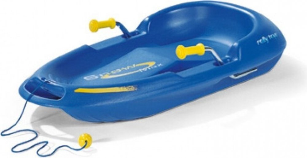 Kovové řídící páky s pryžovou rukojetí - nestudí do rukou. Šňůra na tahání. Testováno na 100Kg. Záruka 3 roky! Dvouplášťová konstrukce izoluje dítě od mrazu ze spoda (izolant-vzduch). Váha: 4 kg. Barva: modrá.