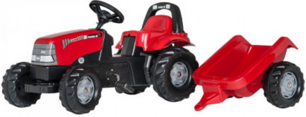 Dětský šlapací traktor s přívěsem Rolly Toys CASE 1170 CVX v červené barvě nabízí bezpečnou a zábavnou jízdu pro nejmenší. Má zabudovaný a regulovatelný řetězový pohon, otevírací kapotu se skrytým úložným prostorem a pohodlné opěradlo. Zadní tažný hák umožňuje připojit přívěs i další doplňky, díky čemuž se rozvíjí motorika a koordinační dovednosti dětí.