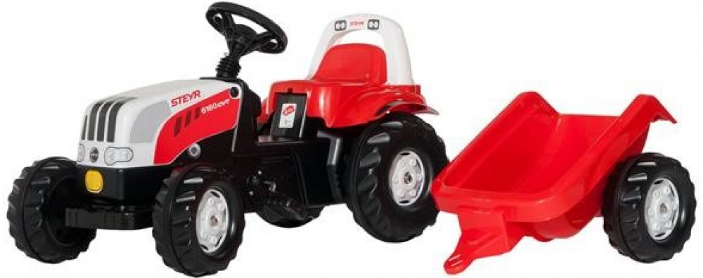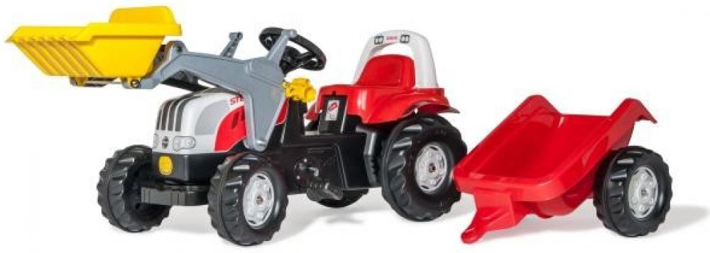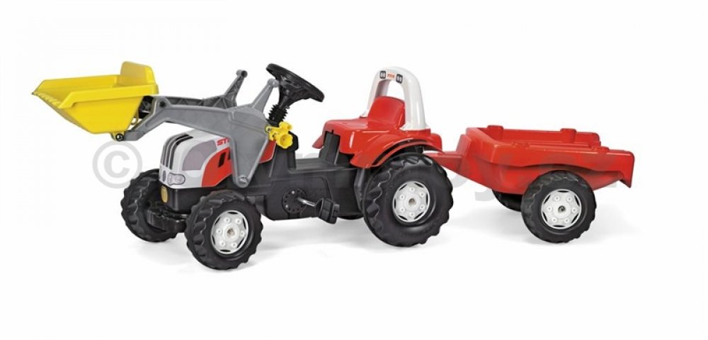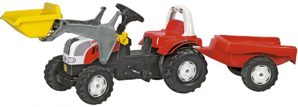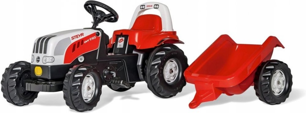 Rolly Kid Steyr s čelním nakladačem a přívěsemtraktor s vlekem a lžící, 169 x 44 x 53,5 cm, Traktůrek Steyr je určený pro děti od 2 1/2 let. Díky posuvnému sedadlu však poroste s Vašimi dětmi. Je šlapací a snadno ovladatelný. Traktůrek je již vybaven pohyblivou nakládací lžící a vlečkou a má také otevírací kapotu. Traktůrek můžete doplňovat o veškerý sortiment z oddělení příslušenství. Takže můžet...