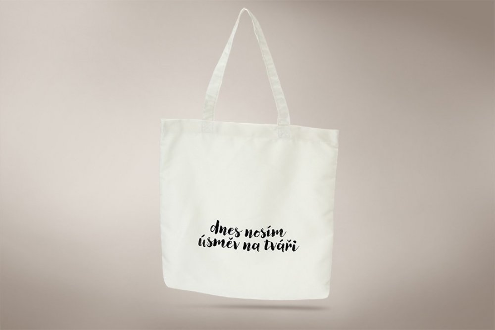 Rozměr tašky z pevné bavlny je 40 cm výška x 36 cm šířka x 7 cm hloubka (dno). Barva krémová s černým potiskem. Nosnost do 20 kg. Vyrábí česká firma Rolsit - výrobce obalů a nákupních tašek s potiskem: www.rolsit.cz