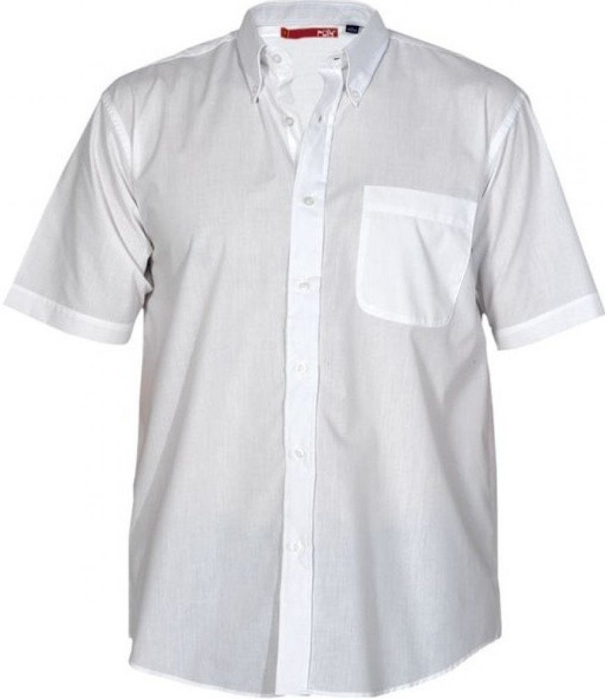 Pánská košile s krátkým rukávem. Klasický škrobený límec s knoflíčkem. Levá náprsní kapsa, zapínaní na sedm knoflíků v barvě košile. 65% polyester, 35% bavlna, 130g/m2. Barvy: bílá, černá, navy, granátová, modrá. Vel.: M-3XL