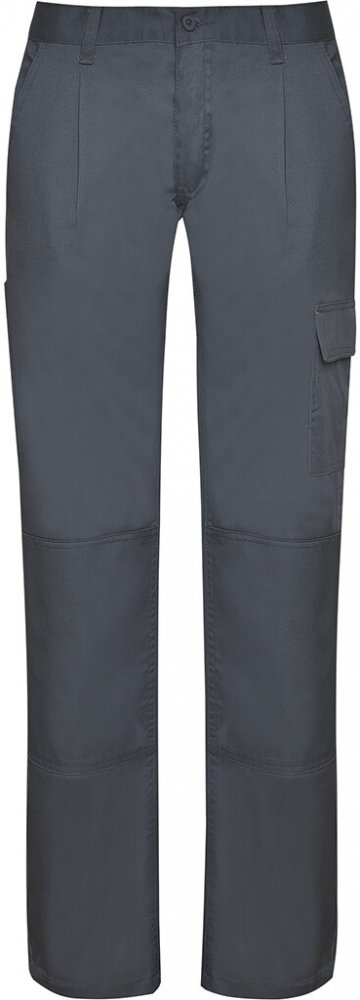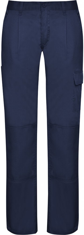 Dámské pracovní kalhoty se dvěma předními kapsami. Upravitelný obvod pasu. Zesílená dvojitá zadní část. Dvě zadní funkční kapsy, jedna postranní. Pas s poutky na opasek.
