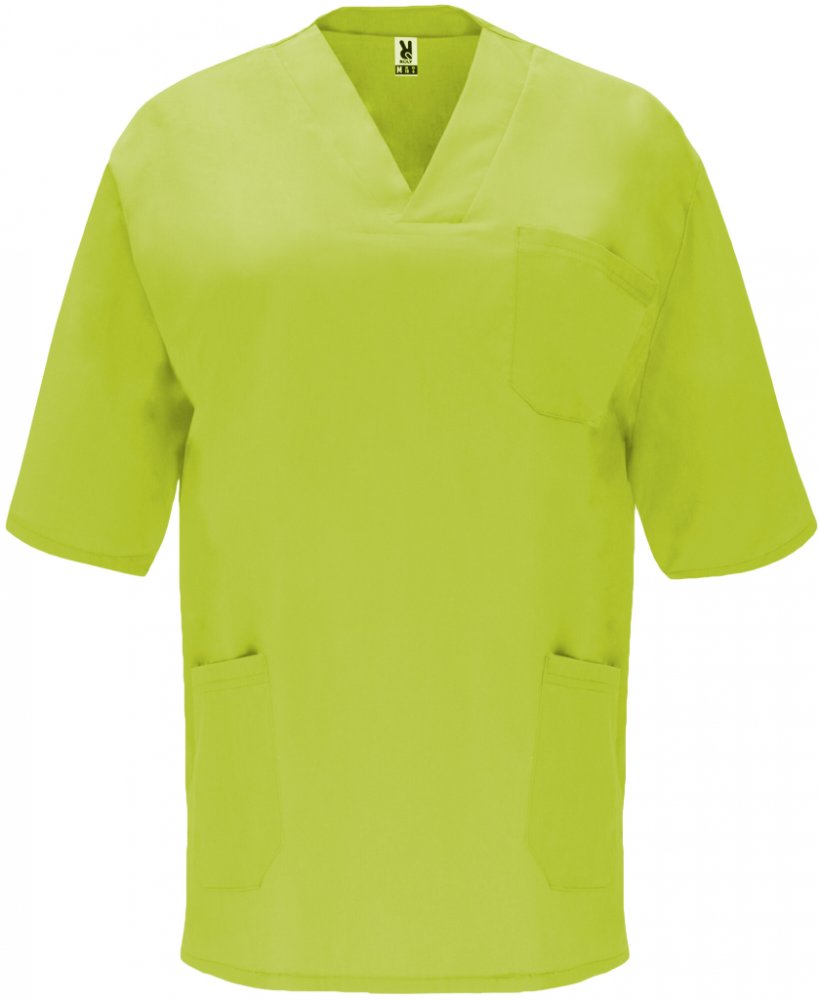 Pracovní blůza unisex s krátkým rukávem a překříženým výstřihem do V.Blůza má jednu náprsní kapsu,dvě postranní kapsy a boční rozparky-