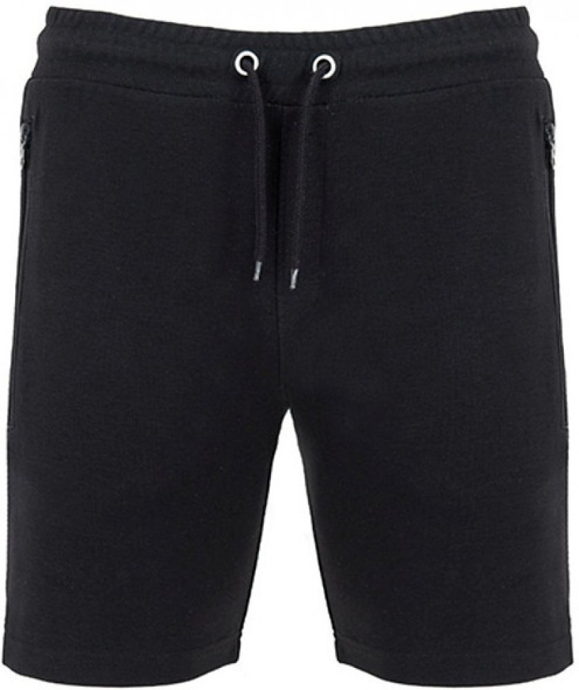 Pánské šortky s elastickým pasem, stahovací šňůrkou a kovovými očky. Dvě postranní kapsy se zipem. Ozdobné prošití poklopce. Zadní kapsa na patent. Odnímatelný štítek. Materiál 63% bavlna, 37% polyester. Gramáž 270g/m2. Typy barevného provedení: černá, námořní modrá, melírová. Velikost: S-XXL.