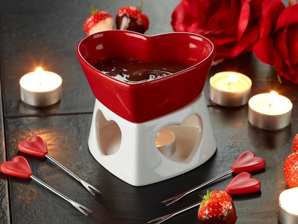 Keramická sada pro domácí výrobu fondue v desingu srdce pro zamilované.