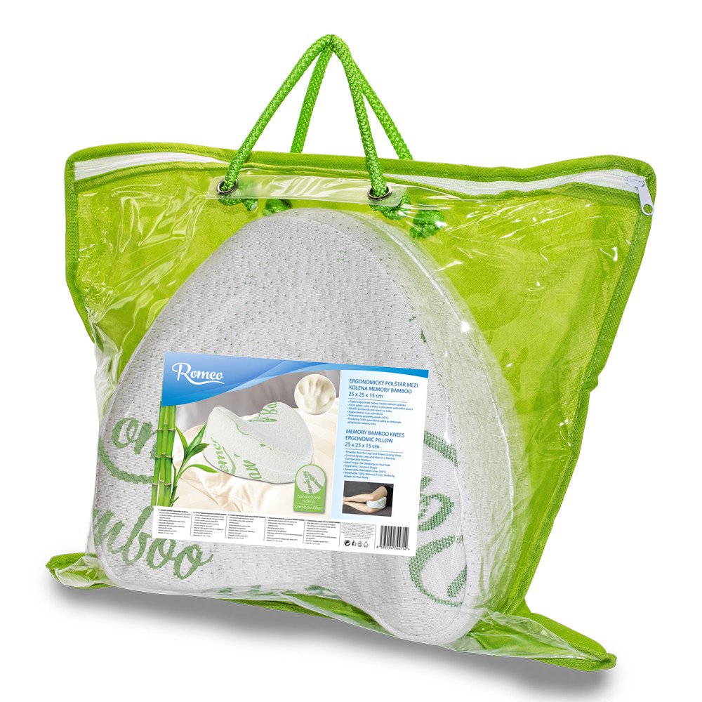 Ergonomický polštář mezi kolena MEMORY BAMBOO Ergonomický polštář mezi kolena MEMORY BAMBOO je vyroben z vysoce pružné viskoelastické pěny, ta má výrazně delší životnost a lepší pružící a prodyšné vlastnosti než klasická pěna. Speciální viskoelastická pěna reaguje na tělesnou teplotu a zajistí rovnoměrné rozložení tlaku a svým efektem pomalého vracení se do původní polohy.Užijte si pohodlné spaní bez bolesti ve správné poloze! Ergonomický polštář mezi kolena MEMORY BAMBOO - výhody: - příjemný pocit při spánku a relaxaci, zmírňujeňuje tlak na kolena při spaní na boku- maximální komfort a podpora, uleví od bolesti nohou, kolen ale i zad - revoluční tvar půlměsíce / pěna s paměťovým efektem - přizpůsobí se tvaru nohou- povlak Bamboo (40% bambusové vlákno, 60% polyester - antibakteriální, hypoalergenní, nepohlcuje pachy, uzavírání na zip, pratelný do 30°C) Dárek ZDARMA: transportní taškaRozměr: 25 x 25 15 cmZvýhodněná sada 2 ks 698 Kč (349 Kč/ks),samostatně za 399 Kč.Ergonomický polštář mezi kolena MEMORY BAMBOO lze objednat s náhradním extra povlakem BAMBOO Na ergonomický polštář mezi kolena MEMORY BAMBOO poskytujeme záruku v délce 24 měsíců.
