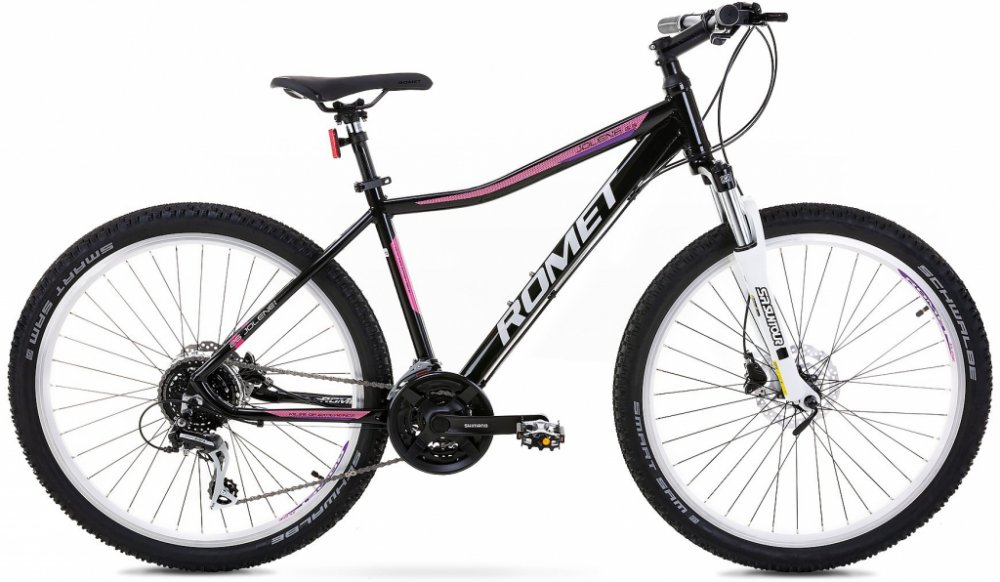 Dámské horské kolo Romet Jolene 6.3 26" – Black/Pink - jedná se o nejpokročilejší model s 26palcovými koly. Atraktivní, moderní a speciálně profilovaný rám nejen přitahuje pozornost, usnadňuje nastupování, ale také umožňuje agresivní jízdu v terénu. Dobrou trakci v terénu zajišťují pneumatiky se speciálně vyvinutým dezénem. Byly vytvořeny s ohledem na horská kola (MTB). Vyznačují se nejen dobrou p...