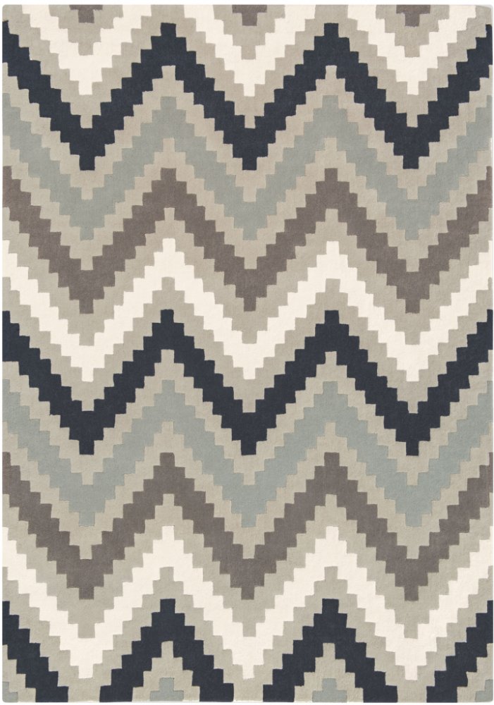 Tento ručně všívaný koberec, odborně vyrobený z nejjemnější čisté vlny, má bohatý, vysoký vlas a výjimečně měkkou texturu. Velký moderní design ve tvaru velkých šipek je oživen složitými ručně vyřezávanými detaily.