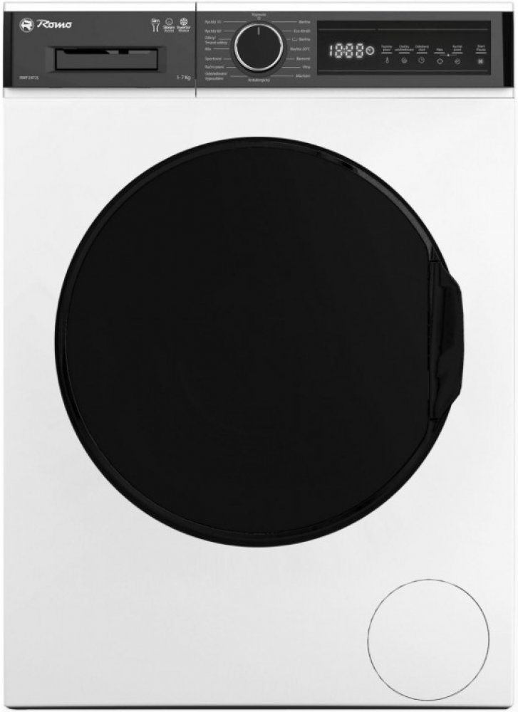 Romo 7 kg 76 dB přední volně stojící bílé invertorový předem plněná B A B 2100 W 45 l B 52 kWh 7 kg 49.7 cm 59.7 cm 45 l 84.5 cm 65 kg 64 kg 15