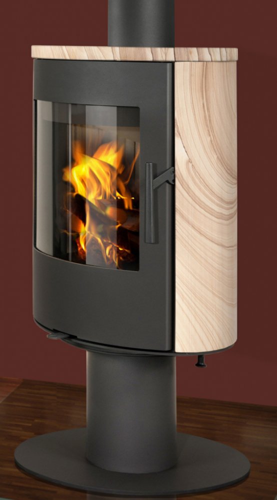 Krbová kamna Romotop EVORA T 07 s obkladem z přírodního pískovce spojují moderní design, vysokou účinnost a kvalitní zpracování. Díky kompaktním rozměrům se hodí i do menších interiérů, přitom ale nabídnou dostatečný výkon pro vytápění běžných obytných prostor. Charakteristickým prvkem je otočný systém, díky kterému lze kamna otáčet a vychutnat si pohled na plameny z různých částí místnosti. Obklad z pískovce navíc akumuluje teplo a prodlužuje jeho sálání i po vyhasnutí ohně.
