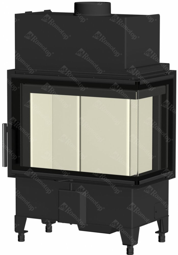 Rohová krbová vložka Romotop Heat R/L 2g S 60.44.33.13 (23)s ohýbaným nebo děleným sklem má jmenovitý výkon 5,7 kW, regulovatelný v rozmezí 2,9 – 7,4 kW. Je určena pro konvekční i akumulační provoz za použití odvětrávací mřížky. Doporučený komínový tah 12Pa. Průměr centrální přívodu vzduchu (CPV) je 125 mm. Účinnost 83 %. Průměrná spotřeba dřeva 1.6 kg/hod.