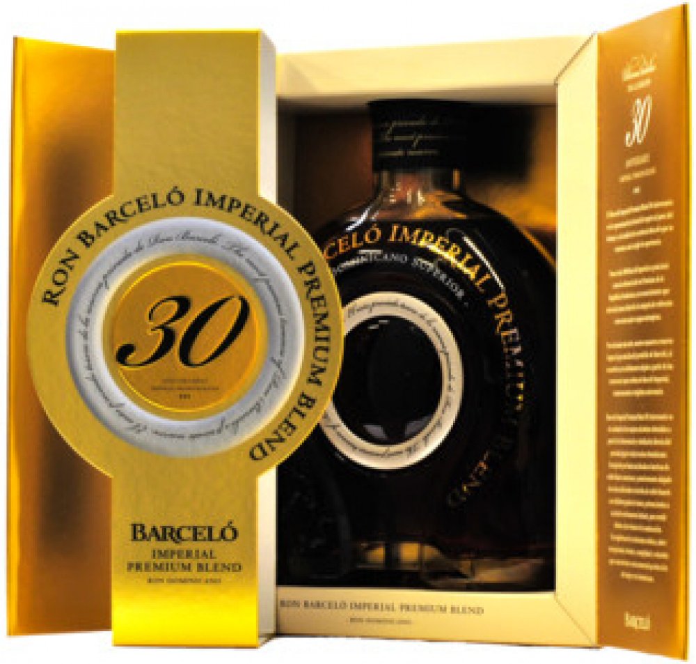 Ron Barceló Premium Blend 30 Aniversario je kompozice vybraných starých imperiálních odrůd, které zrají nejprve v sudech z amerického bílého dubu aby zajistili vyváženou chuť při druhém staření v Bordeaux sudech z Chateau d'Yquem.