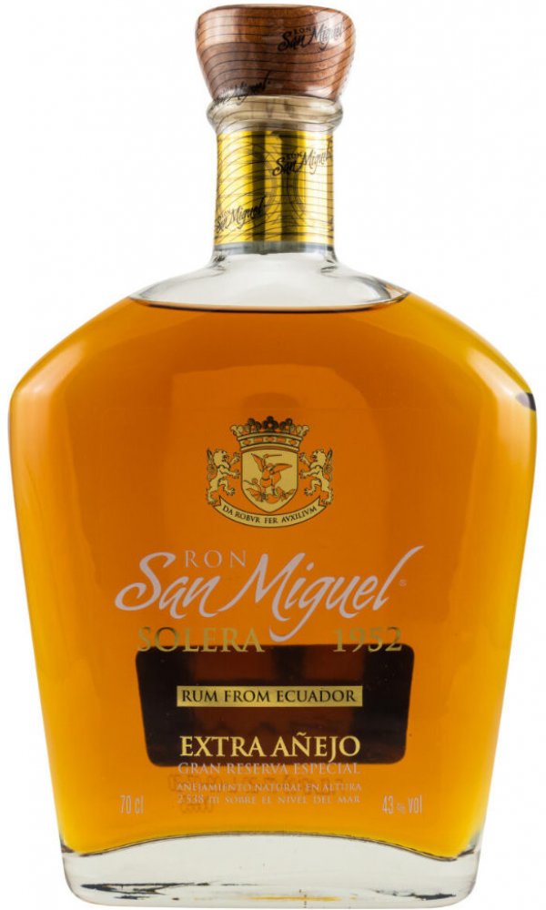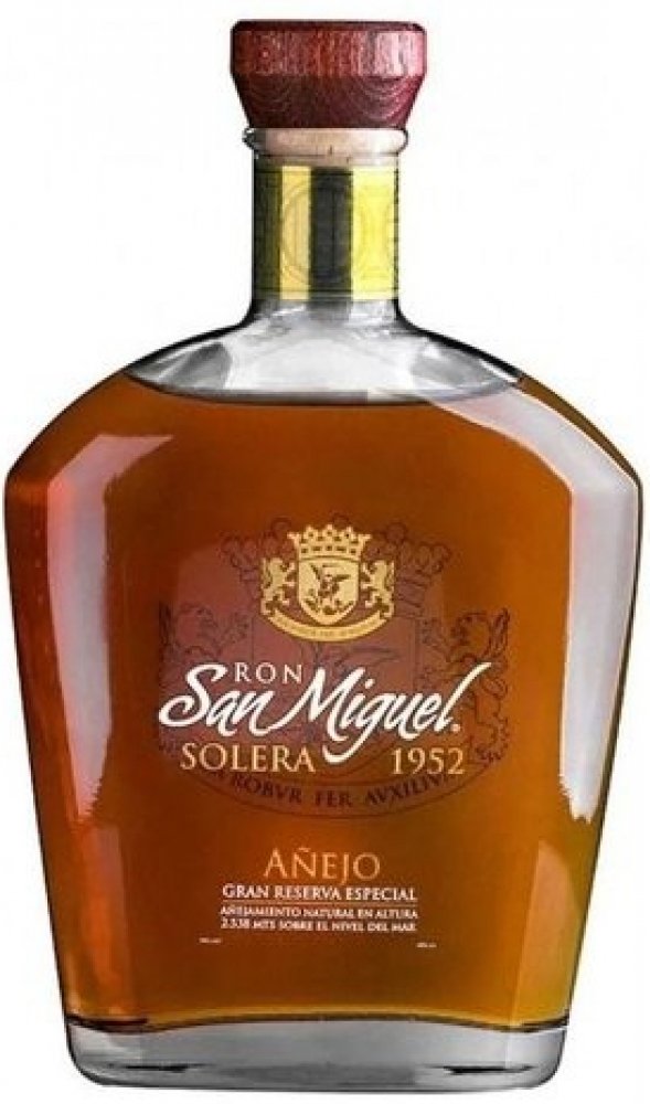 Zlatavá barva, lehké a sladké aroma exotického původu - cukrová třtina, vanilka, banán, pomerančová kůra a dřevitost.Jak již napovídá označení rumu, tak San Miguel 1952 je vyroben metodou „solera" což, pokud milovníky rumů netrápíme čísly znamená , že se jedná o výběr těch nejstarších rumů selektovaných právě osobou masterblendera. San Miguel vyrábí rum z třtinové melasy a medu. Kvašení zabere 36 hodin a následná destilace probíhá ve 4sloupcové destilační koloně. Výsledkem je destilát v rozmezí 85 - 95 objemových % alkoholu. Zajímavostí je převoz rumu do výšky 2538 m. n. m. a uložení ke zrání do sudů z amerického dubu.Vzhledem k nadprůměrnému vyzrávání je tato Solera 1952 Extra Anejo skutečnou vzácností.Barva: zlatá.Aroma: komplexní, ovocná a kořenitá.Chuť: komplexní, expresivní, ovocně-kořenité, sladké tóny.Závěr: dlouhotrvající.