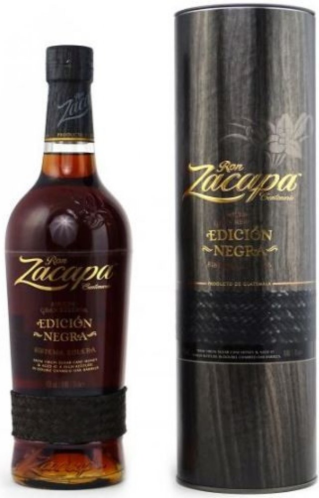 Zacapa Edición Negra je rum inspirovaný přírodními elementy Guatemaly a tmavým ohněm guatemalských sopek. V chladném klimatu guatemalských hor pomalu zraje blend nejdříve systémem solera v sudech po bourbonu, sherry, a vínech Pedro Ximénez. Na konci procesu zraje rum ve znovu vypálených dubových sudech po bourbonu, což v rumu zvýrazňuje dřevité, kořeněné a kouřové tóny.Představuje jiný typ rumu Zacapa, který se chuťovým profilem odlišuje od Zacapy 23. Má temně mahagonovou barvu s intenzivními jantarovými odlesky. V aroma se projevuje karamelizované ovoce, švestky a rozinky, které jsou dokonale vyvážené jemnými kouřovými tóny. Na patře se v explozi chutí snoubí kouřové tóny s čokoládou a sušenými ovocem, které přechází v jemné a mimořádně dlouhé zakončení. Láhev je dodávána v tubě.