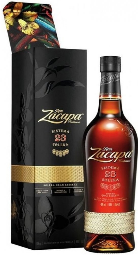 O produktu: Ron Zacapa Centenario 23 je prémiový guatemalský rum s bohatou a komplexní chutí. Vyrábí se z "panenského medu" cukrové třtiny, což je první lis šťávy z cukrové třtiny, která se následně fermentuje a destiluje. Zraje systémem Solera v nadmořské výšce 2300 metrů nad mořem, kde panují ideální podmínky pro pomalé a harmonické zrání. Během zrání prochází rum různými sudy z amerického bílého dubu, ve kterých dříve zrály bourbon, sherry Pedro Ximenez a sherry Oloroso.