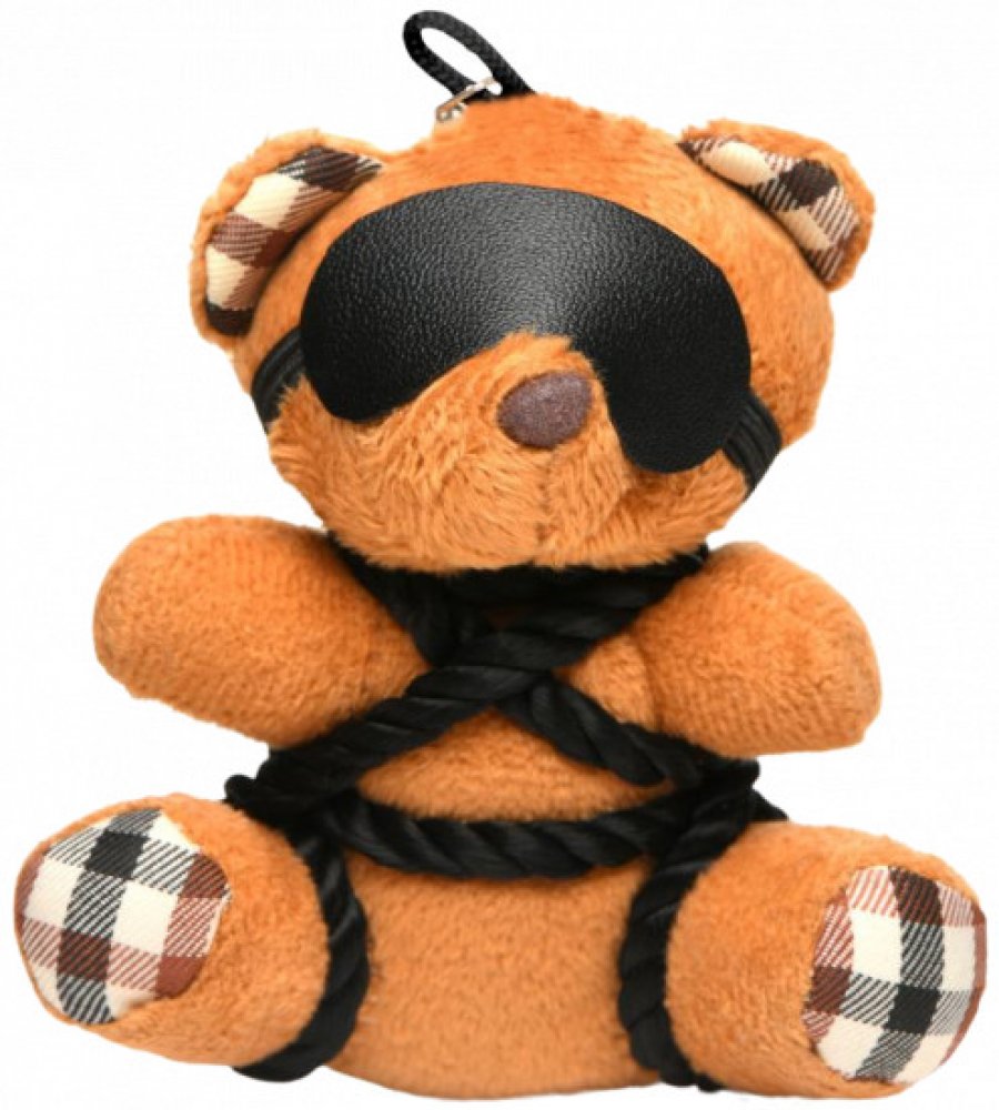 Plyšák má na sobě masku na oči, zatímco tělo mu zdobí provaz a vypadá tak, jako by se chystal na peprné praktiky. Jeho design proto ocení hlavně milovníci BDSM hrátek, kteří si ho připnou třeba na klíče, pověsí do auta nebo vystaví na poličku.
