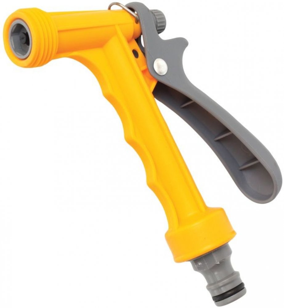 Kvalitní zavlažovací pistole bez trysky s možností dalšího napojení. Tento zavlažovač je vyroben z kvalitního plastu. Nastavení síly proudu a aretace proudu je samozřejmostí. Připojení zavlažovače: 1/2" rychlospojka Počet funkcí: 1 Materiál: plast Hmotnost pistole: 46 g Barva: šedá - žlutá