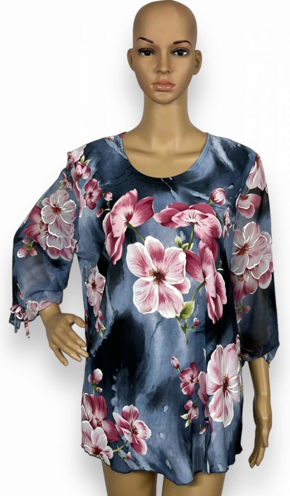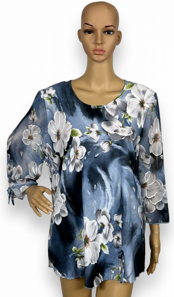 Rose 95% bavlna 5% elastan s 3/4 rukávem volnočasové bílá s výstřihem do U loose fit květované s hlubokým výstřihem