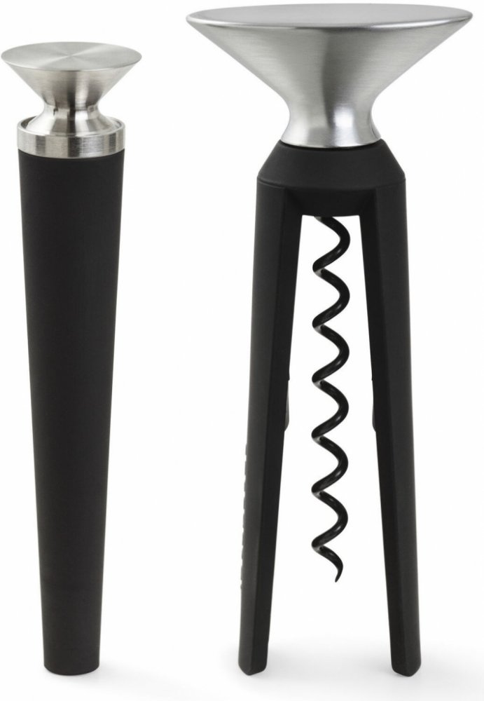 Soušástí sady je i otvírák lahví potažený měkkou gumou, která poskytuje dobrý úchop pří otevírání lahví a zároveň vytváří elegantní kontrast k leštěné oceli. Otvírák má minimalistický tvar a nedává zcela najevo, jak by měl být na uzávěru umístěn. To mu dává rozměr hravosti a nevšednosti.