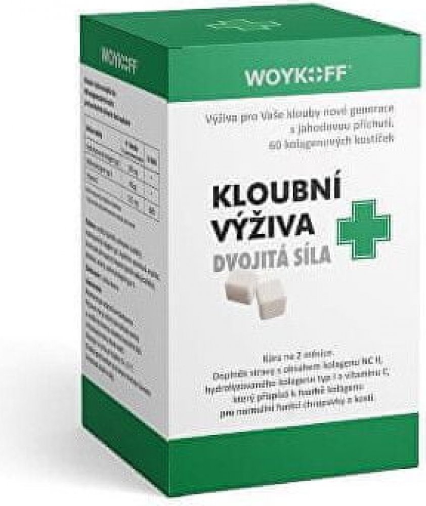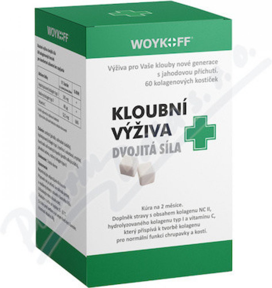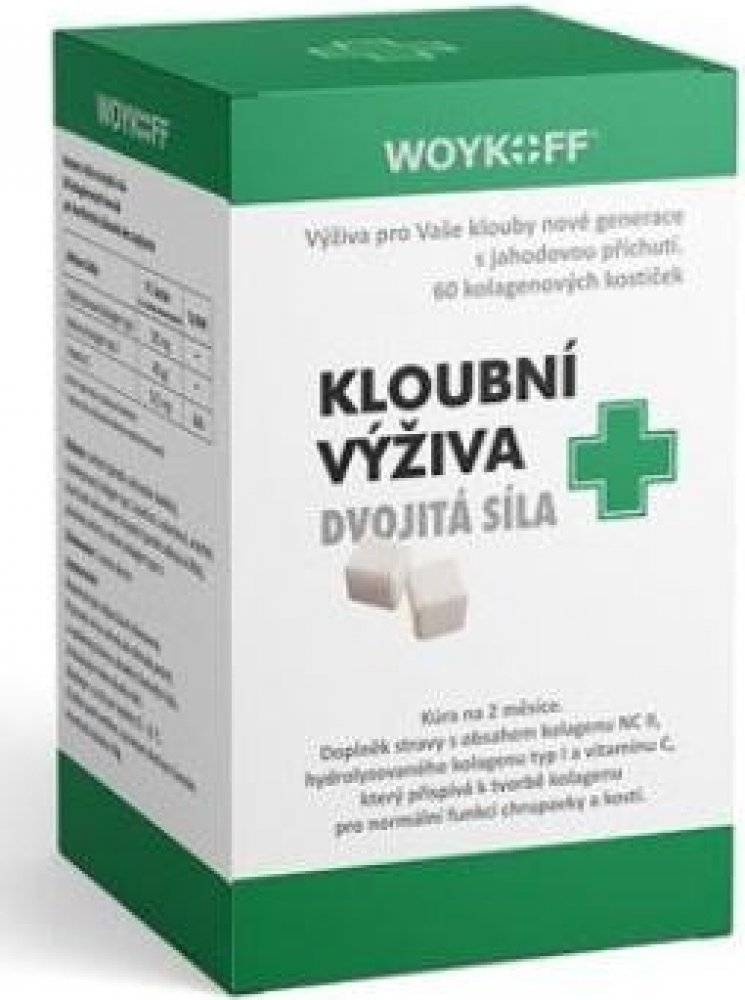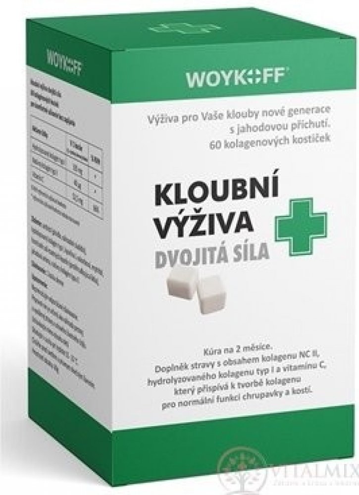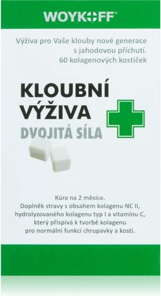 Doplněk stravy kloubní výživa dvojitá síla obsahuje unikátní kolagenové kostičky s příjemnou jahodovou příchutí. Kostičku je nutné rozkousat bez zapití. Je tak zaručeno mnohem rychlejší vstřebání aktivních látek, a navíc je zaručen styk sliznice s nativním kolagenem typu II. Navíc je tento způsob podání velmi šetrný k žaludku, což je důležité zejména při dlouhodobém podávání až několika měsíců. Ko...