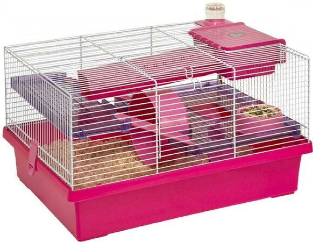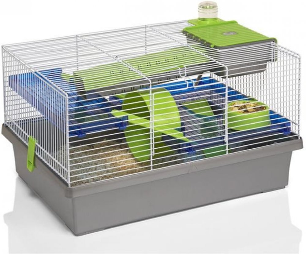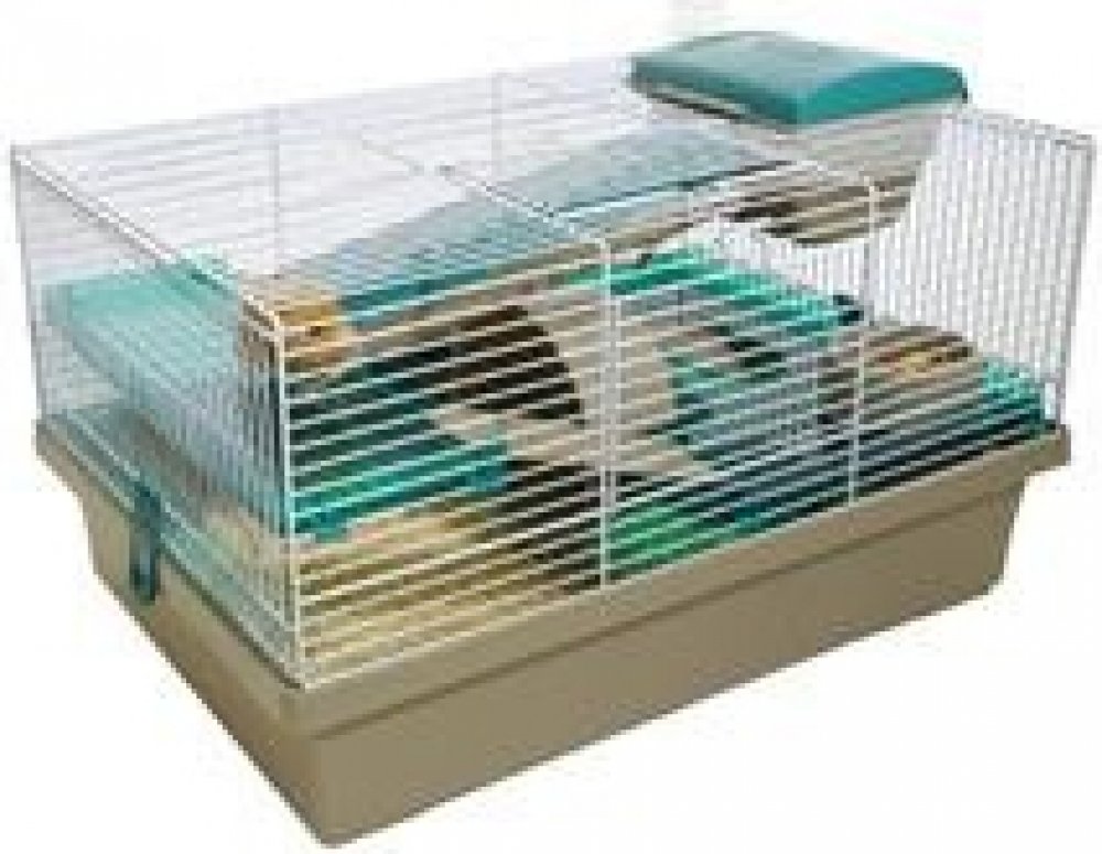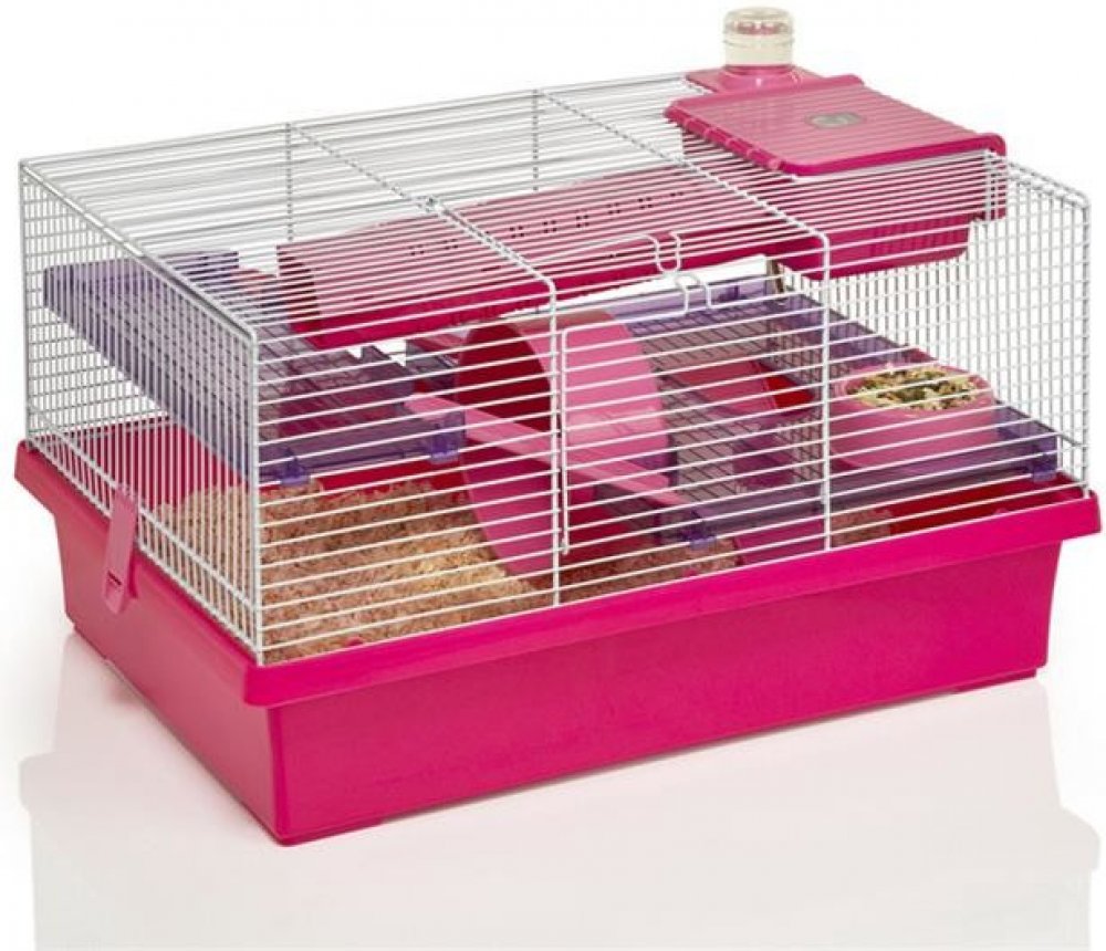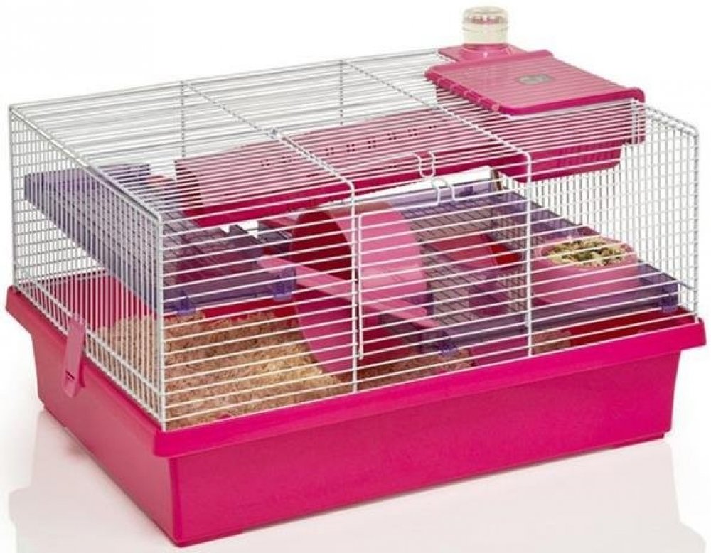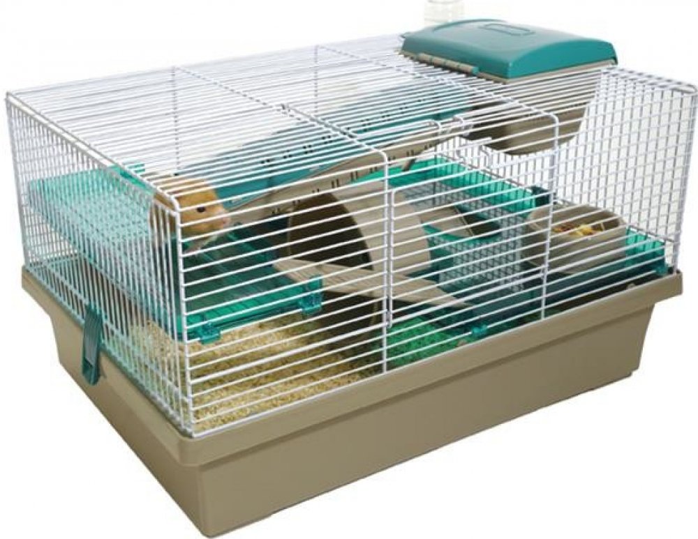 Plastová více patrová klec pro syrské křečky a křečíky s vybavením.