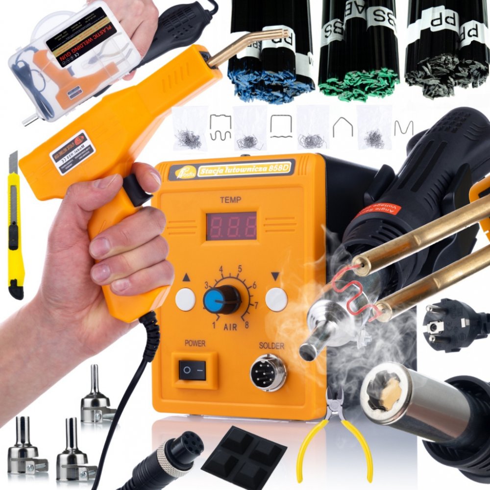 1. pájecí stanice Rosfix 858D: Tato pokročilá svářečka plastů je ústředním prvkem sady a zajišťuje regulaci teploty, přesné foukání a mnoho dalších funkcí, které vám usnadní práci.