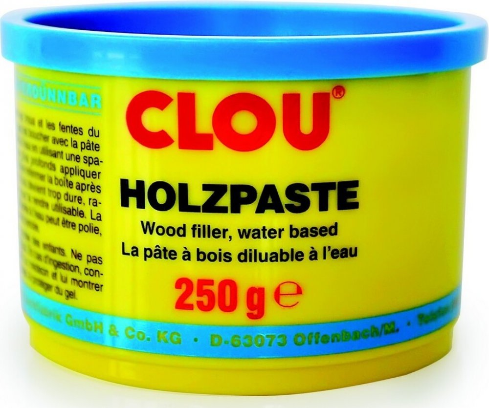 CLOU Holzpaste se používá ke tmelení nábytku, dveří, parket, podlahových