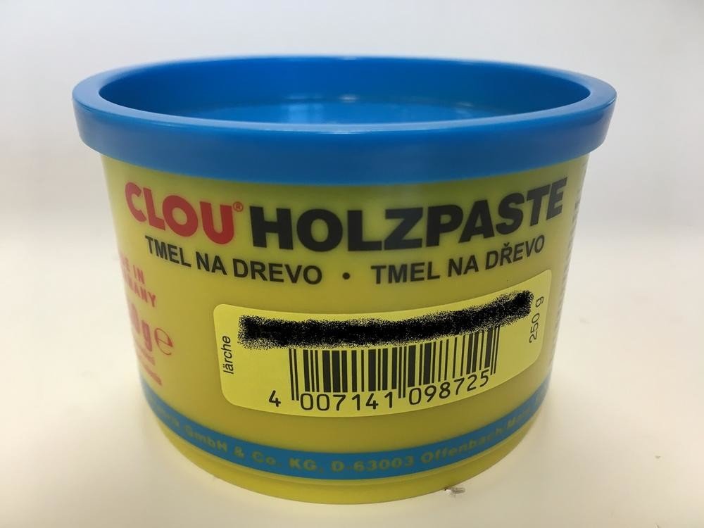 Clou Holzpaste mahagon tmavý 250 g Vodou ředitelný tmel k vyspravení děr, mezer, šrámů, trhlin, prohlubní a prasklin. Vytvrzený tmel lze brousit, hoblovat, pilovat, řezat i vrtat. Všechny odstíny jsou mezi sebou navzájem mísitelné. Povrchová úprava je možná mořidly a laky CLOU.