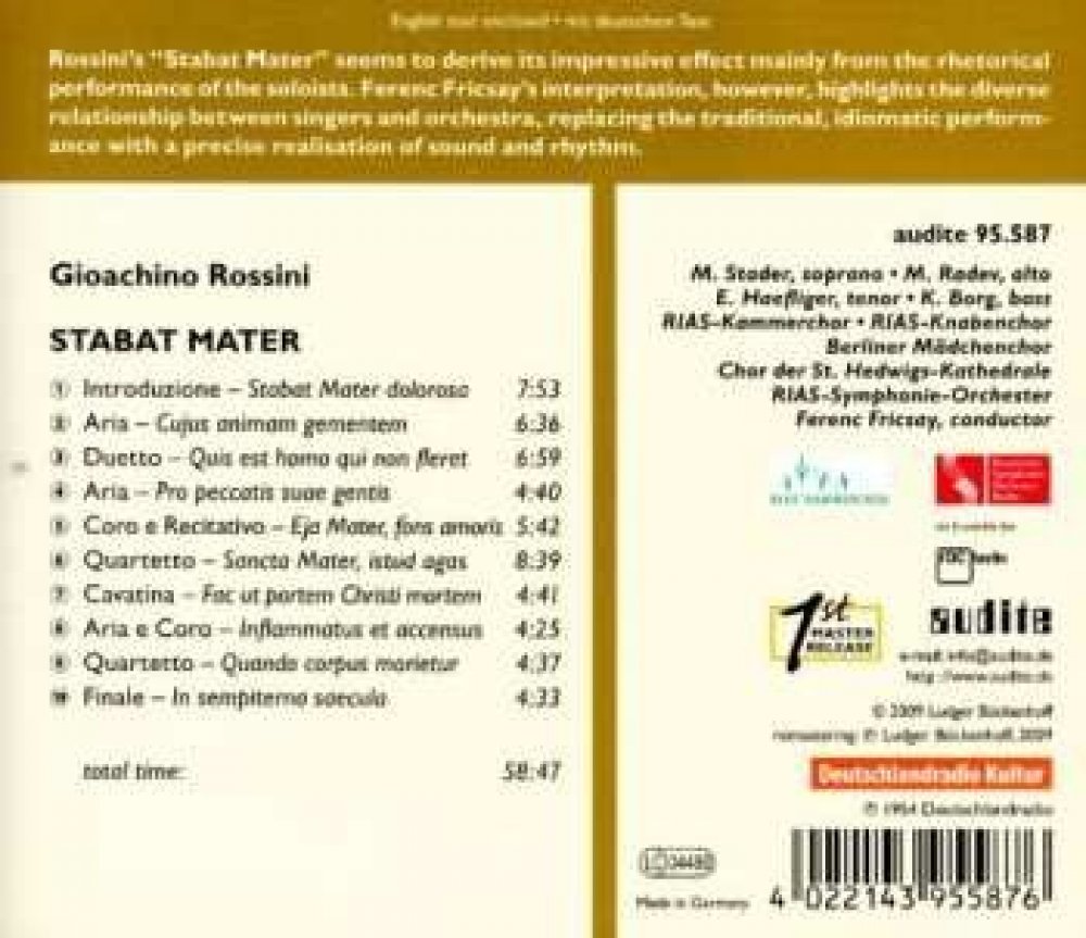 Rossini / Deutsches Symphonie Orch / Fricsay: Edition Ferenc Fricsay 11 verze na CD v standardní edici. Toto konkrétní vydání vyšlo ve vydavatelství Audite dne 14. července 2009. Album.