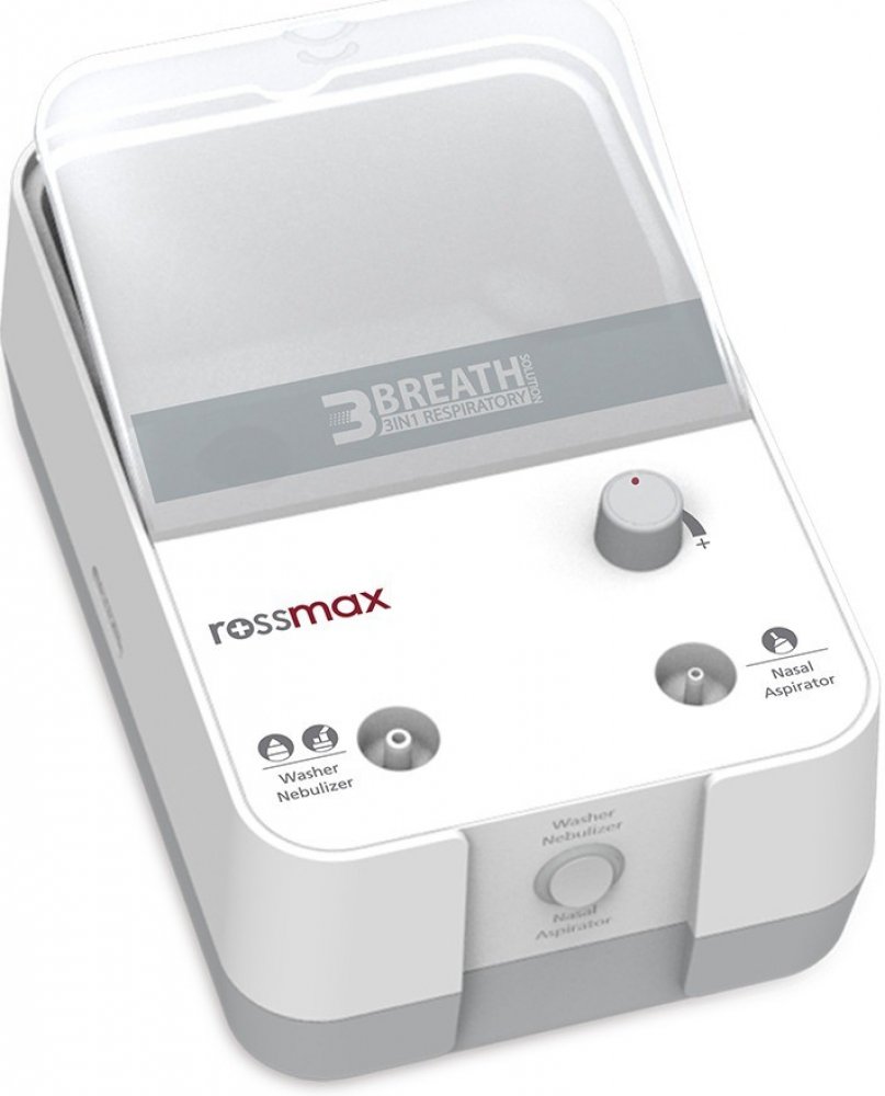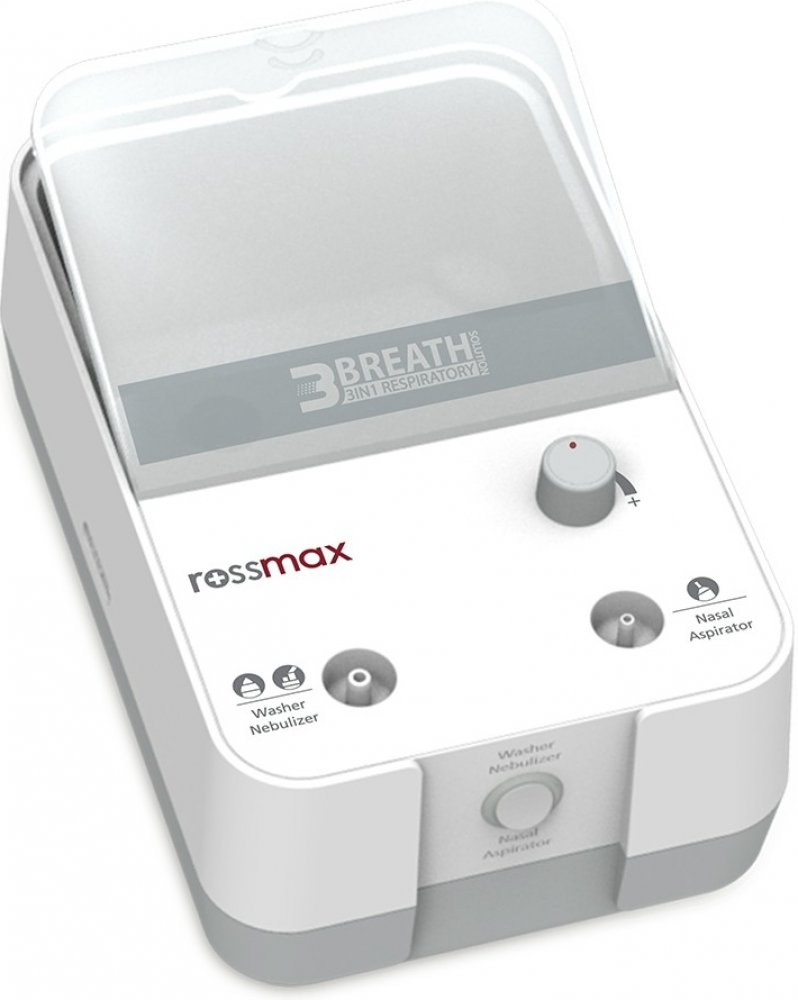 Inhalátor - kompresorový, na léčiva, dětský, nebulizační výkon 0,3 ml/min, velikost částic 2,5 µ, objem zásobníku na léky 5 cm³, hlučnost 60 dB, maska na ústa, celoobličejová maska, nosní nástavec, odsávačka hlenů a dětská maska součástí, 2 masky v balení