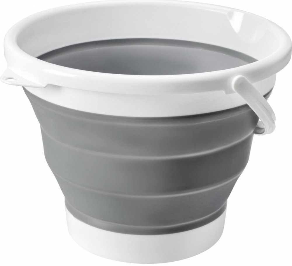 Skládací kbelík 10 l se vyznačuje skládací konstrukcí, která umožňuje zmenšení na kompaktní rozměr. Díky tomu se snadno skladuje a nezabere téměř žádné místo. Ať už v domácnosti k čištění nebo při kempování jako nádoba na vodu. Díky hladkému povrchu lze koš velmi snadno čistit.